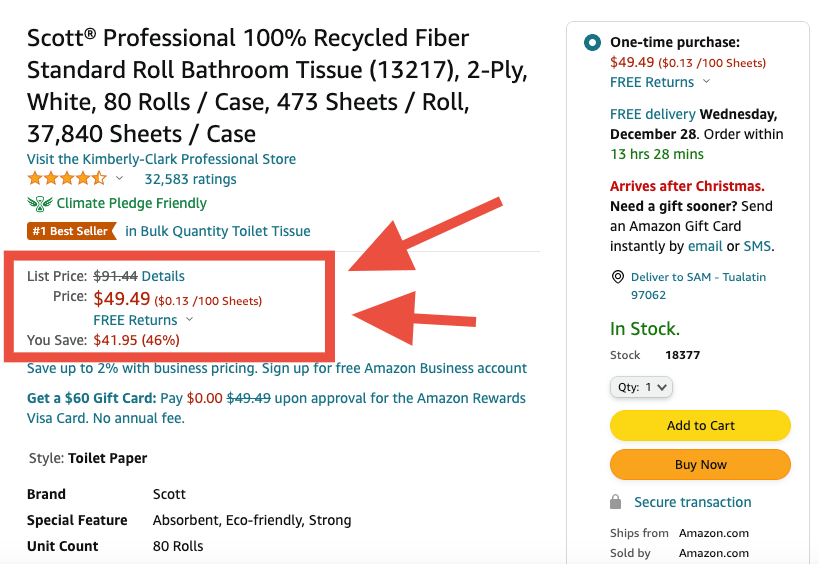 Correctly setting up your list and sell price will allow for strike-through Pricing and Savings display boosting conversion rates !